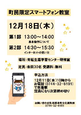 12月11日午前10時よりお電話にてお申込みいただけます。 電話番号は、文化振興課0744-32-6191です。 定員に達し次第、申込受付を終了いたしますのでご了承ください。