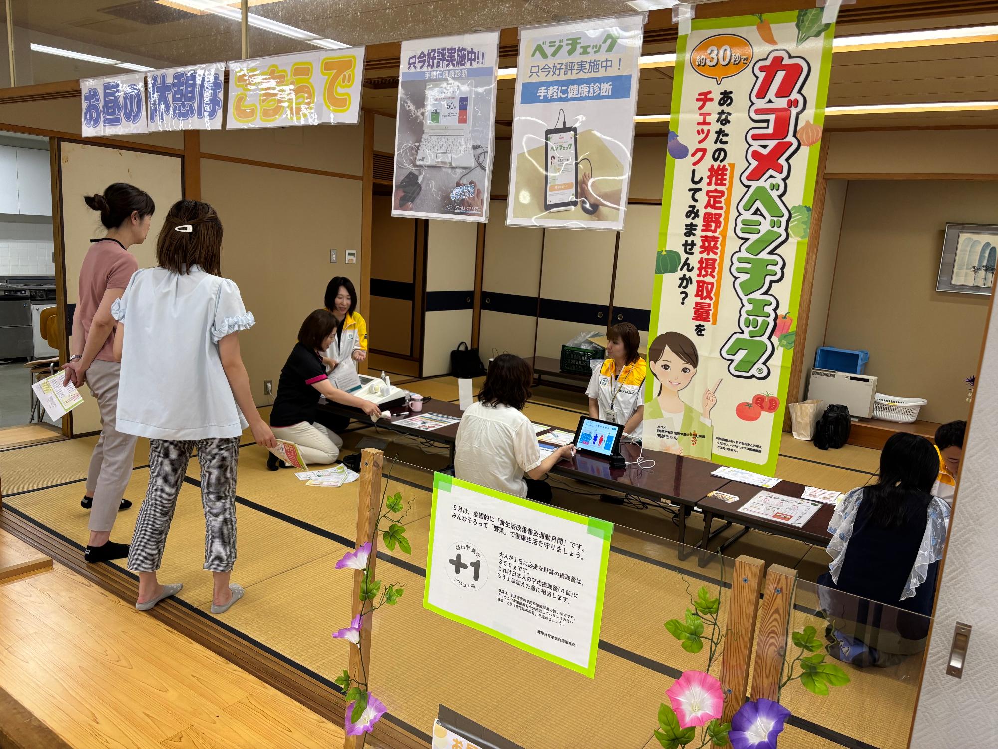 2025年度には、健康経営を基盤として、安全衛生と健康増進を図りながら、職員が働く意欲・能力を最大限発揮できるよう、階層別の意見交換・交流会を充実させながら「健康経営×人材育成×組織力の強化」を図り、働きやすく働きがいのある職場づくりを進めて公務のパフォーマンス向上に取り組んでいます。また、9月には、明治安田生命保険相互会社の支援により、野菜摂取量の測定(ベジチェック)、血管年齢・骨密度測定会を開催し、職員の健康行動を促しています。
