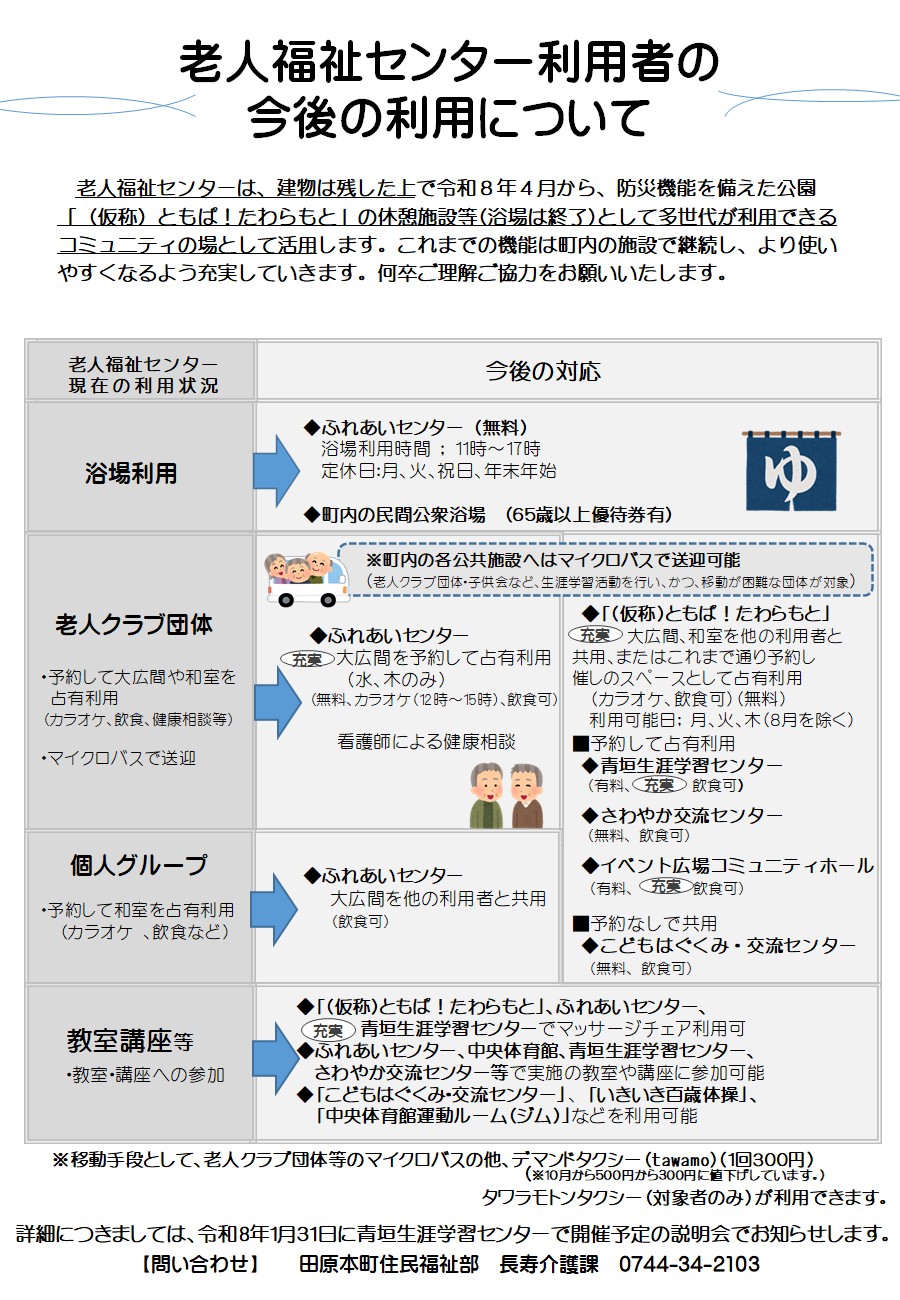 「(仮称)ともぱ!たわらもと」開園と老人福祉センター利用者の今後の利用について