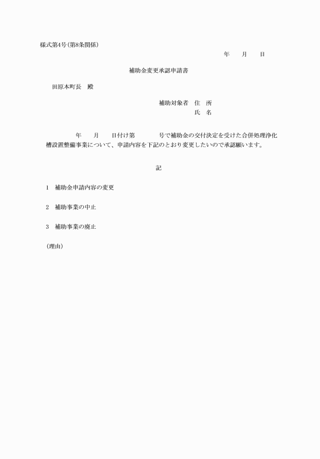 ○田原本町合併処理浄化槽設置整備事業補助金交付要綱