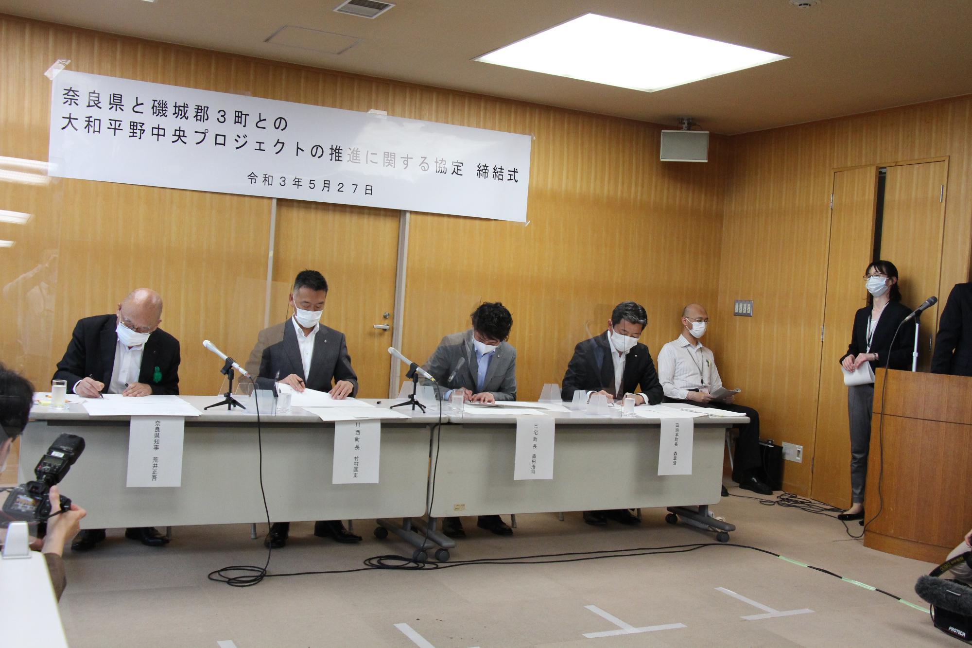 令和3年5月27日(木曜日)奈良県と磯城郡3町との大和平野中央プロジェクトの推進に関する協定締結式