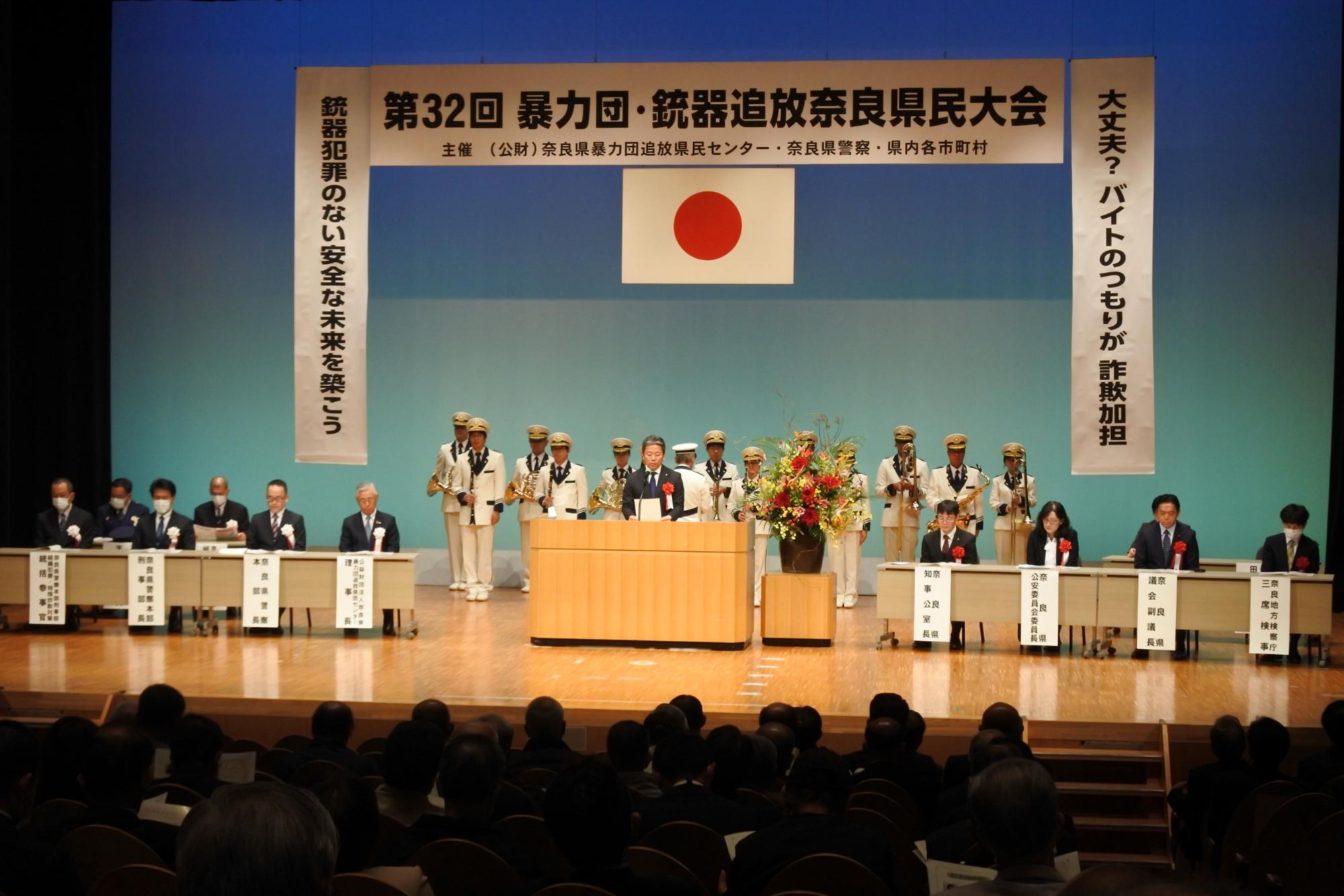 田原本青垣生涯学習センターで開催されました第32回暴力団・銃器追放県民大会にて大会宣言を行いました。