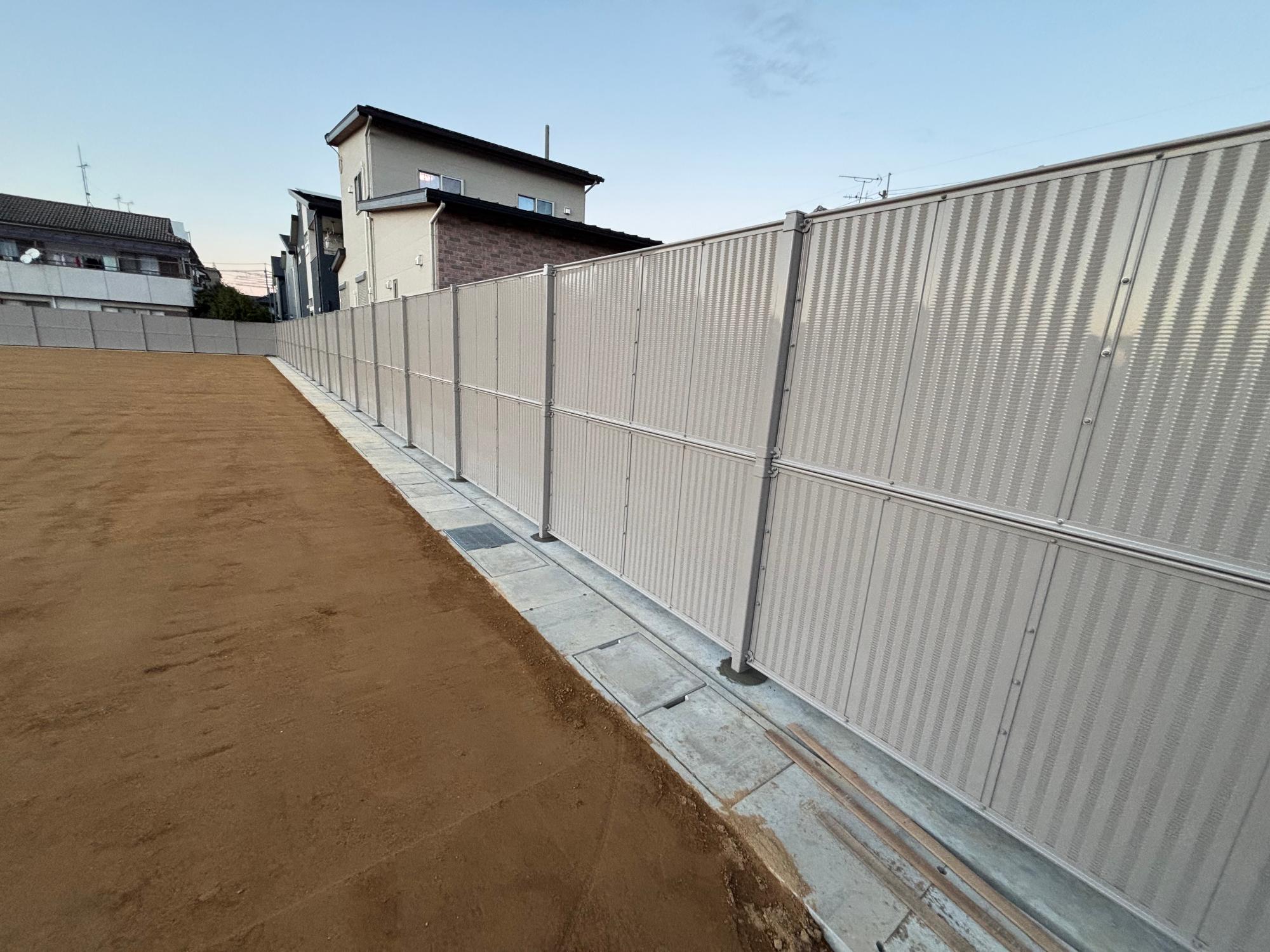 仮設屋外運動場まわりのフェンスの設置もほぼ完了しました。