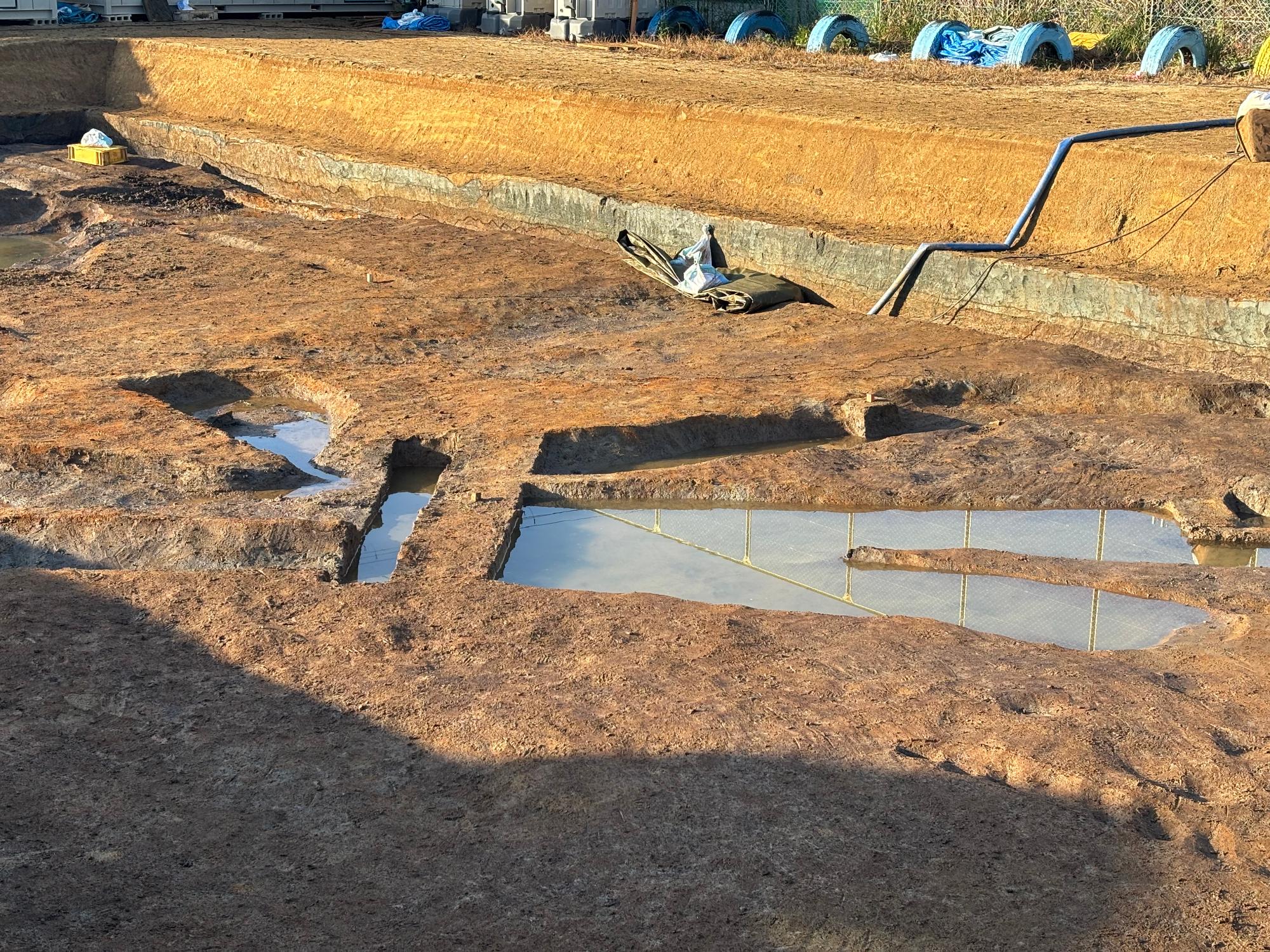 屋外運動場の西側部分で実施しています、埋蔵文化財発掘調査が順調に進んでいます。