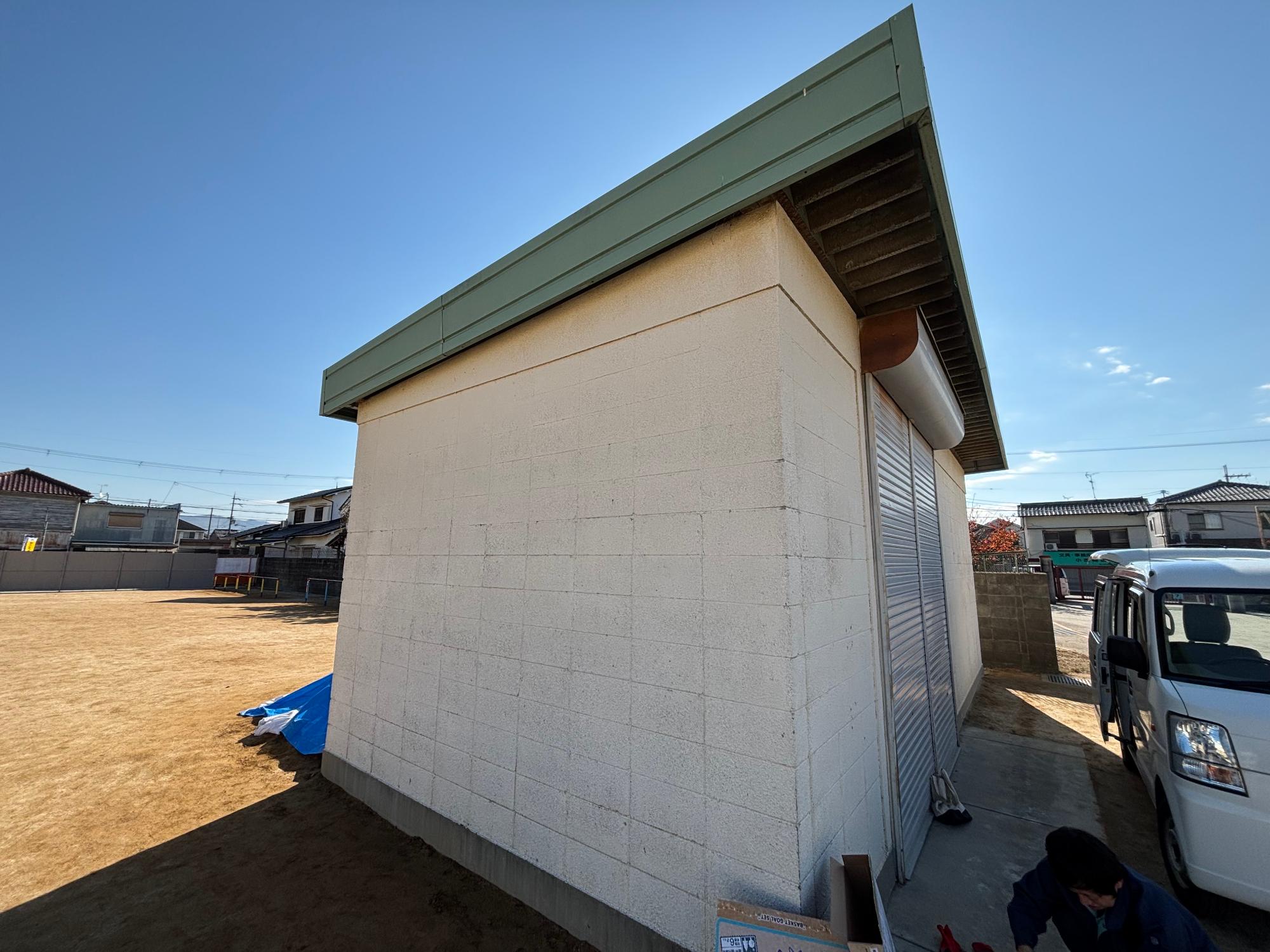 令和7.10.29 仮設屋外運動場設置工事がまもなく完成します。