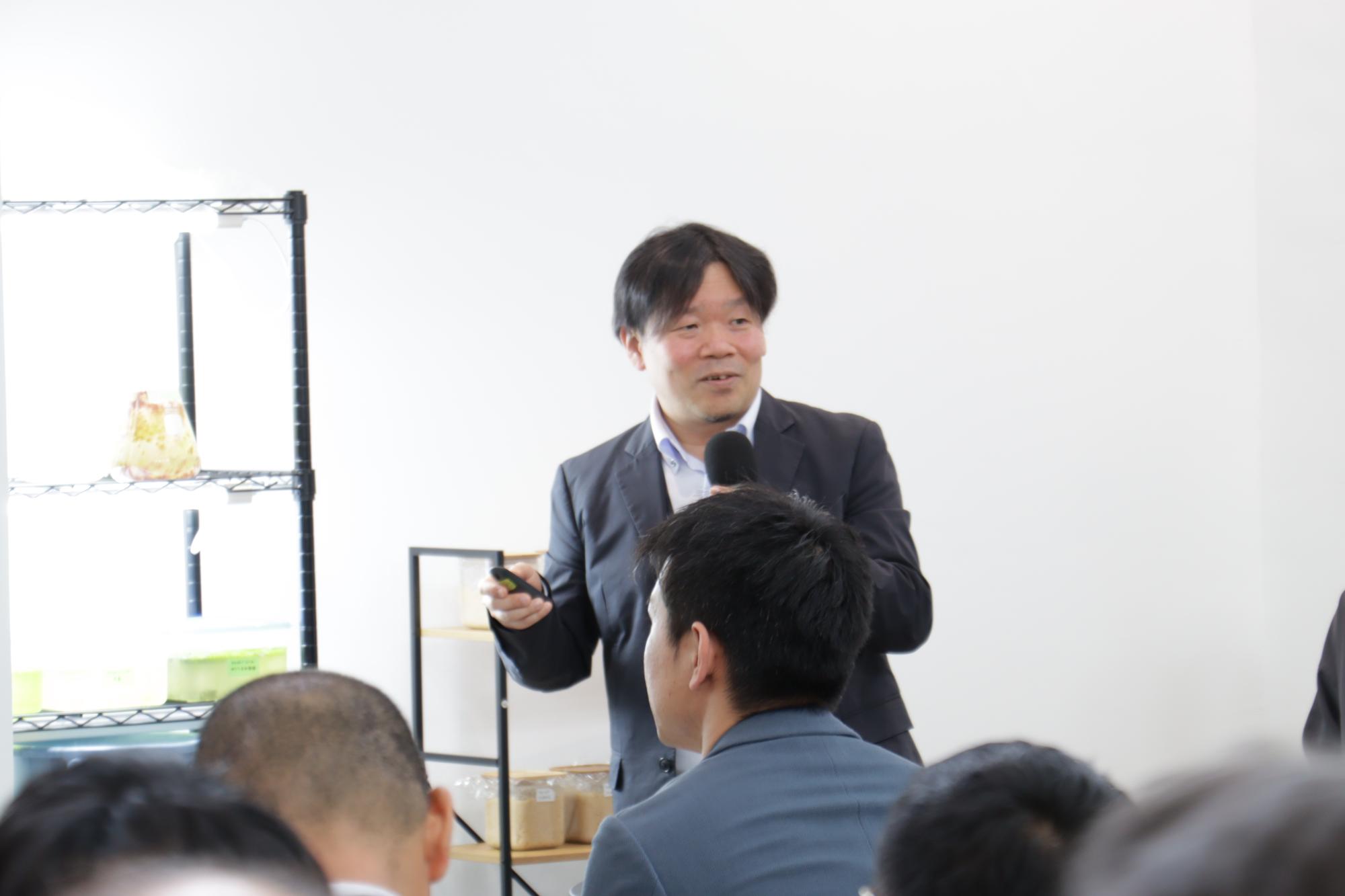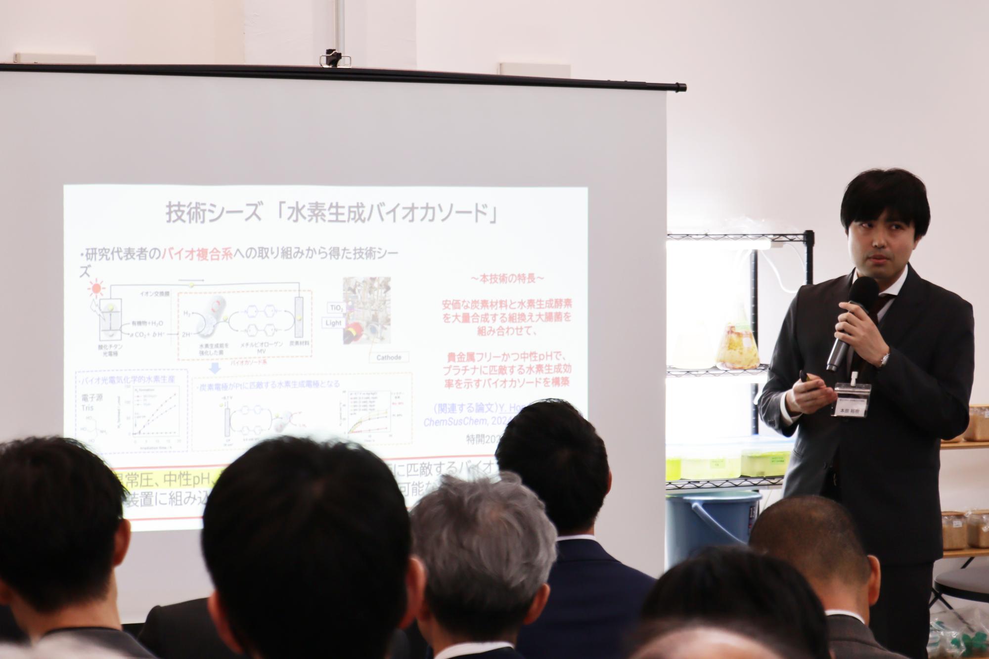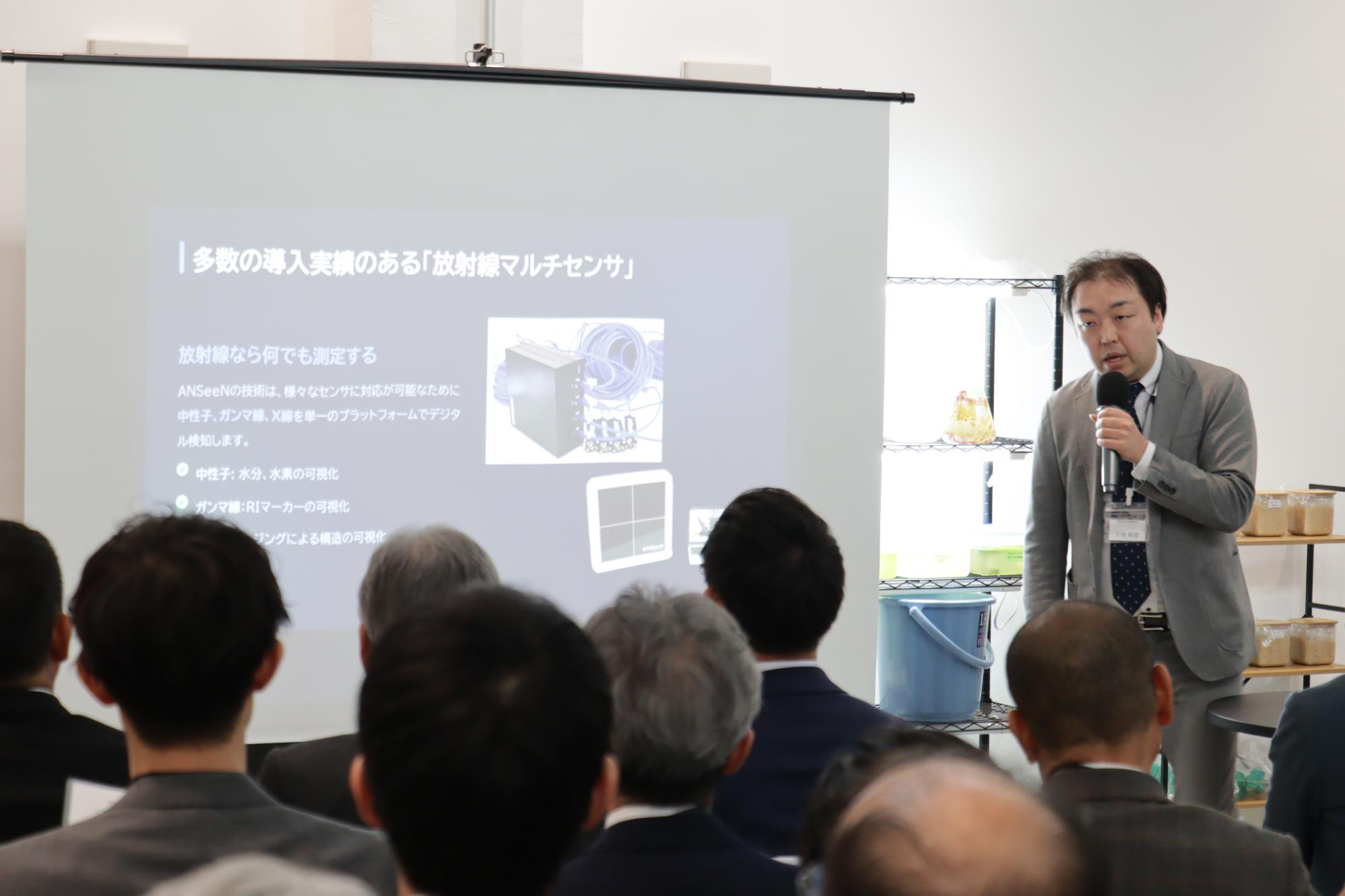 本年度採択された「研究者3者・スタートアップ2社」が、町内企業との連携や実証実験の成果について、熱意あふれるプレゼンテーションを行いました 。
