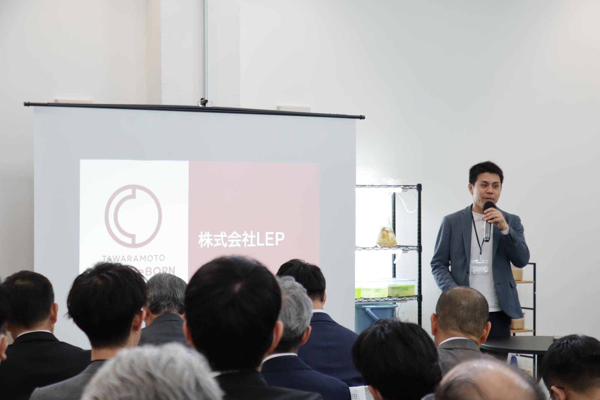 令和8年3月30日(月曜日)、プロジェクトの拠点である「TAWARAMOTOちゅうしんReBORN STUDIO」にて、本年度採択されたスタートアップ5者による成果発表会『DEMO DAY(デモ・デイ)』を開催いたしました 。